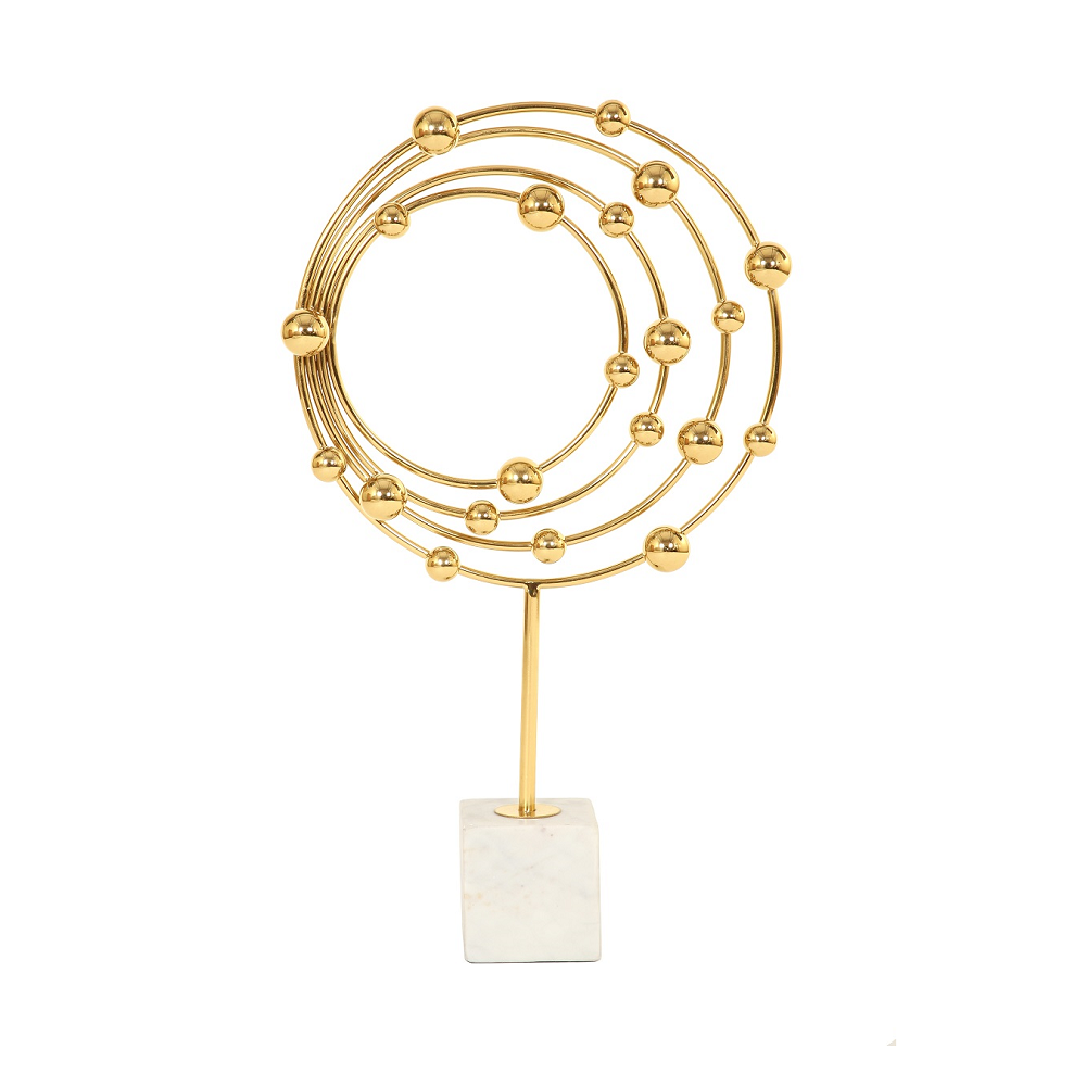 Роскошное абстрактное металлическое настольное украшение в скандинавском стиле на мраморной подставке.