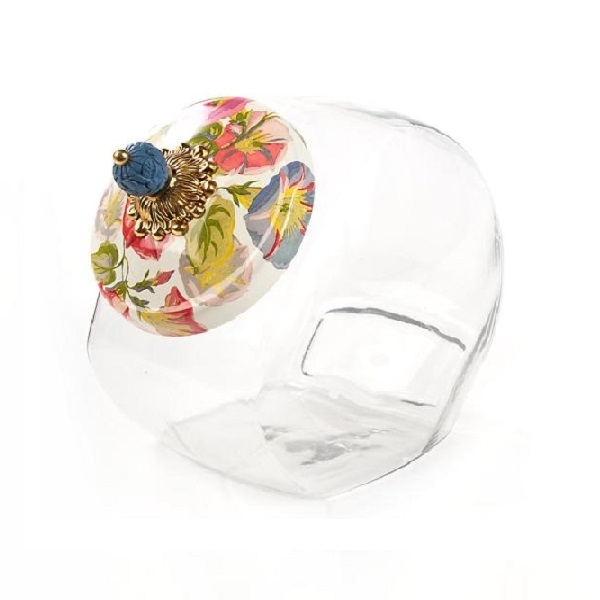 Идеально подходит для всего: от печенья до кукурузных хлопьев, от круп до кубиков сахара. Прочный стеклянный корпус даёт возможность видеть содержимое, а крышка, украшенная вручную узором, добавляет стильности.