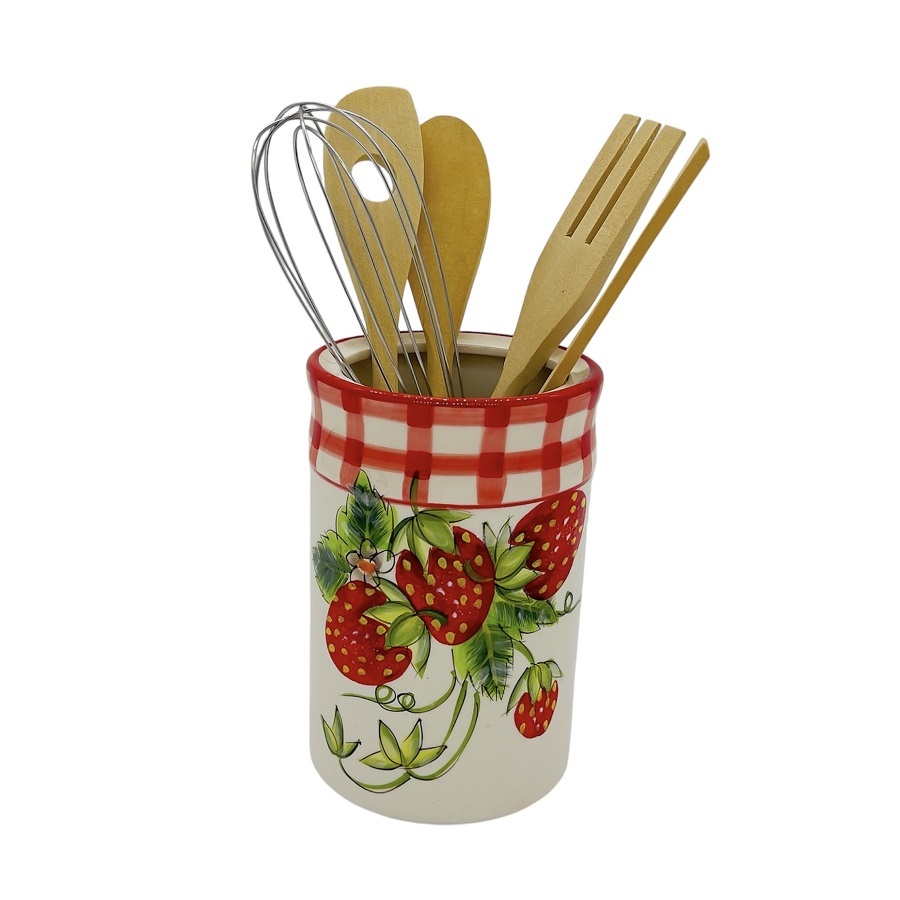 Керамическая банка с кухонными принадлежностями. Стильное и практичное решение для хранения ваших любимых поварешек, лопаток и других кухонных инструментов. Изготовлена из прочной керамики, легко моется и станет украшением вашей кухни. В комплекте 5 предметов.