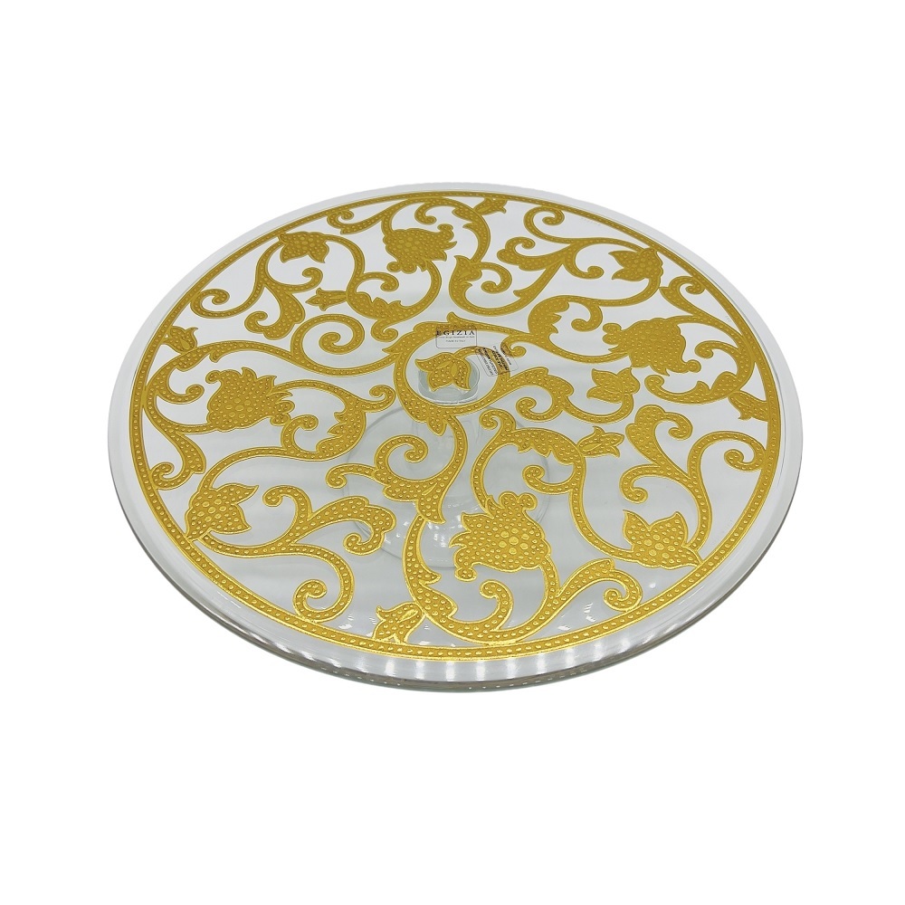 Блюдо изготавливается из стекла, обжигаемого при температуре более 550°С один или несколько раз. После этого вручную декорируется шелкографией — способом, подразумевающим нанесение изображения с использованием особого трафарета и золота в 24 карата.