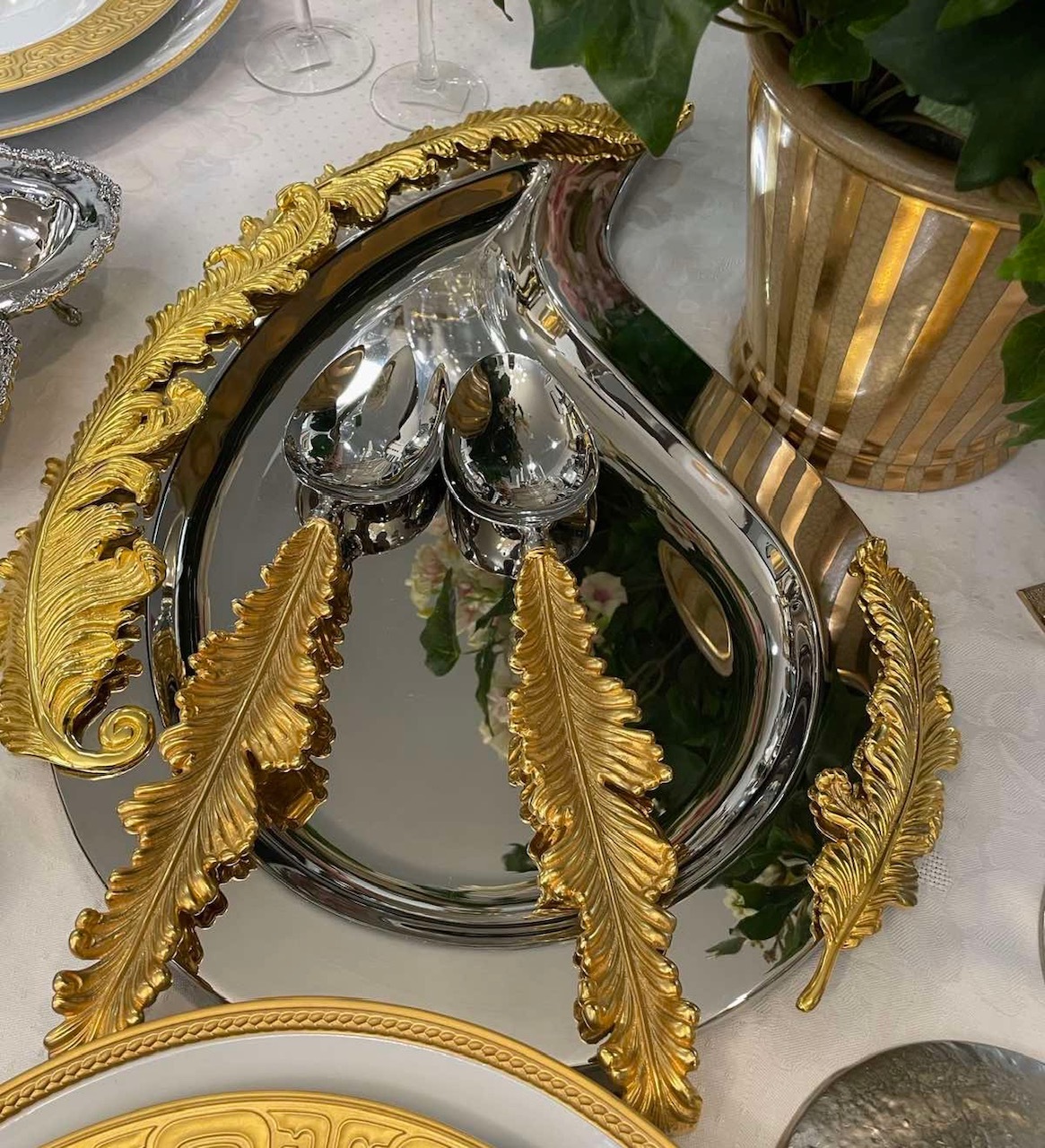 Блюдо от L’objet – роскошное украшение Вашего стола! Сочетание блеска золота и платины и изящной формы выше всех похвал. Блюдо для подачи фруктов, закусок и другой пищи. Очень практично, его удобно переносить, а роскошным дизайном можно любоваться вечно.