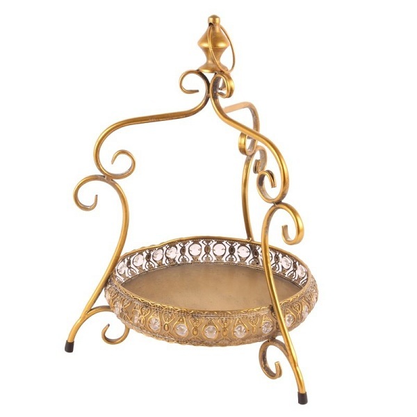 Еда приятнее, когда её легко подают красиво. Одинарная этажерка красивой формы изготовлена из железа с золотой отделкой и бусинками по краю. Это обязательный аксессуар для Вашего обеденного стола или для стильного приёма гостей.