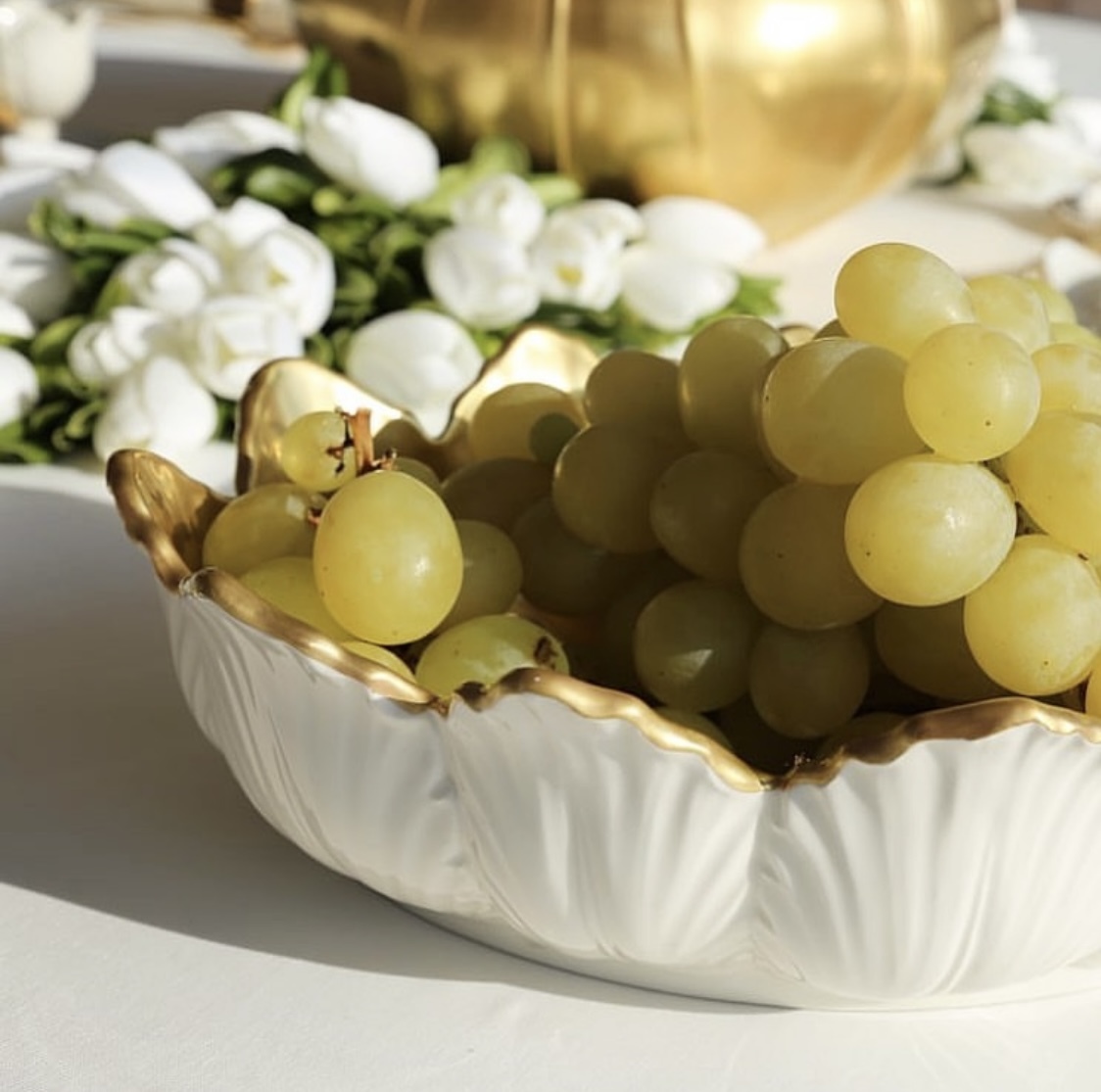 Чаша выполнена искусными итальянскими мастерами в стиле ампир из настоящего фарфора. Украшена резными узорами ручной работы и выполнена в бело-золотом цвете в виде распустившегося подсолнуха. Декорирована 24-каратным золотом, что придаёт ей ещё большую ценность. На каждом изделии стоит подпись автора Чезаре Виллари, что служит гарантией подлинности предмета. Сочетает в себе не только престиж и роскошь, её красота связана с итальянской историей и традициями.
