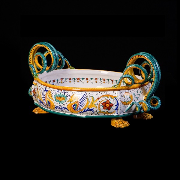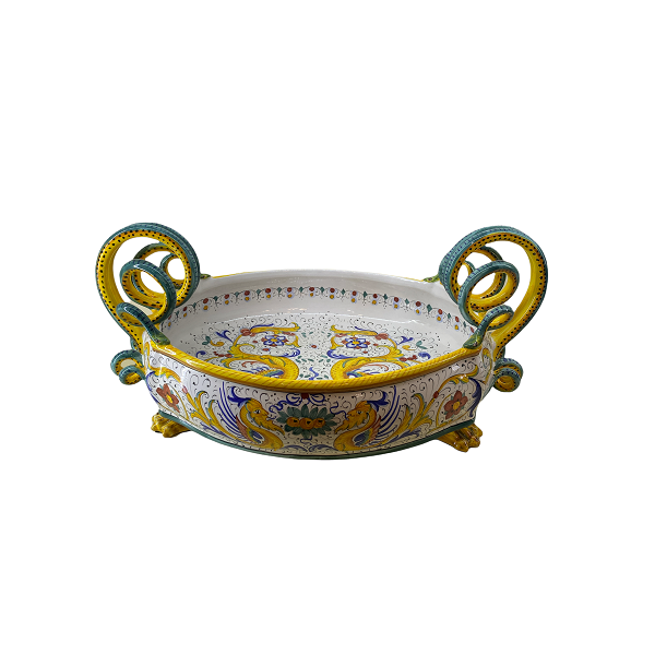 Оригинальная керамическая чаша с ручками - художественное изделие, роспись которого произведена полностью вручную художником, продолжающим традиции старых мастеров Тосканы, где искусство росписи по керамике восходит к середине ХIV века.