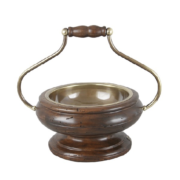 Чаша для фруктов с ручкой из дерева и латуни. Такое изделие несомненно впишется в любой интерьер, сделает его полным и дорогим.