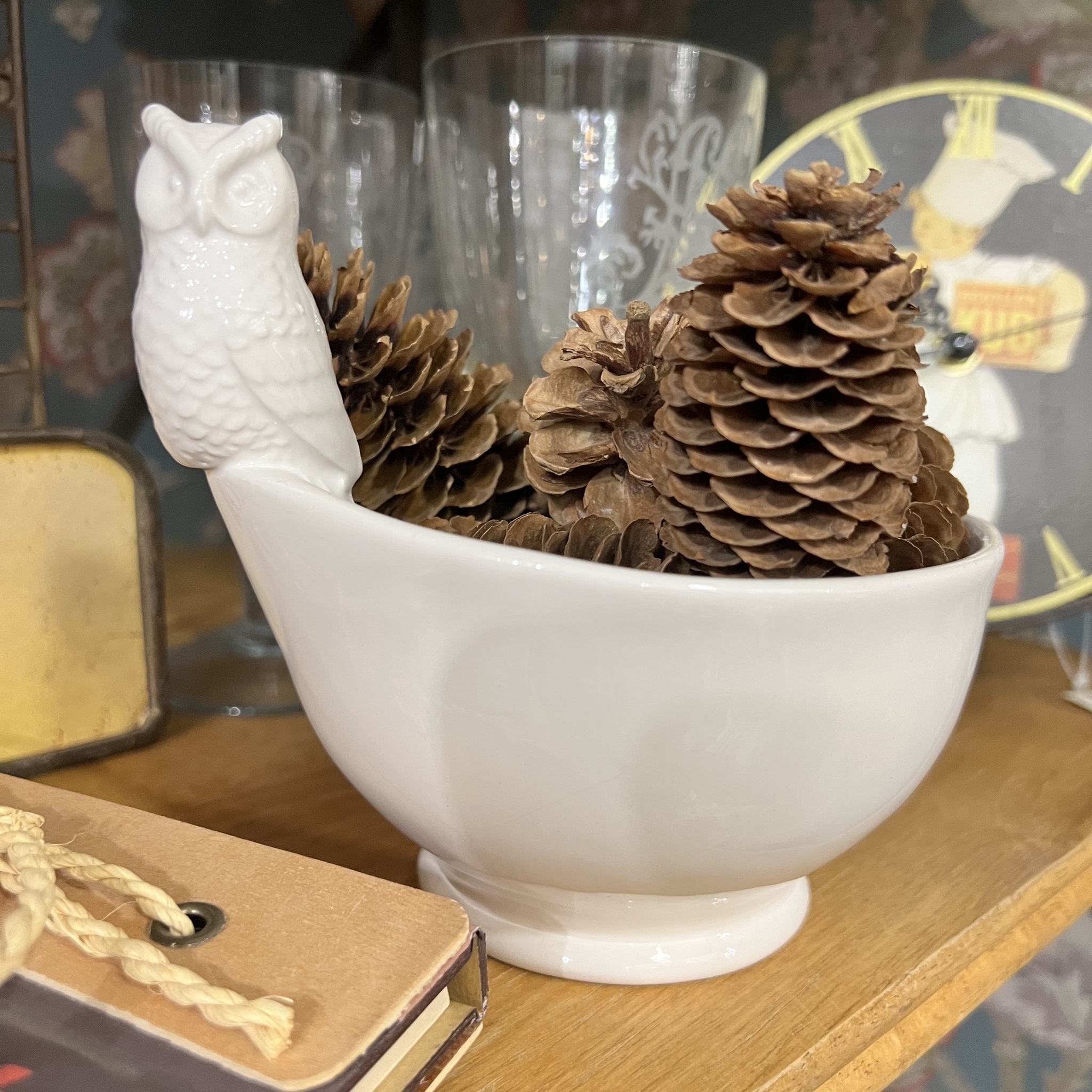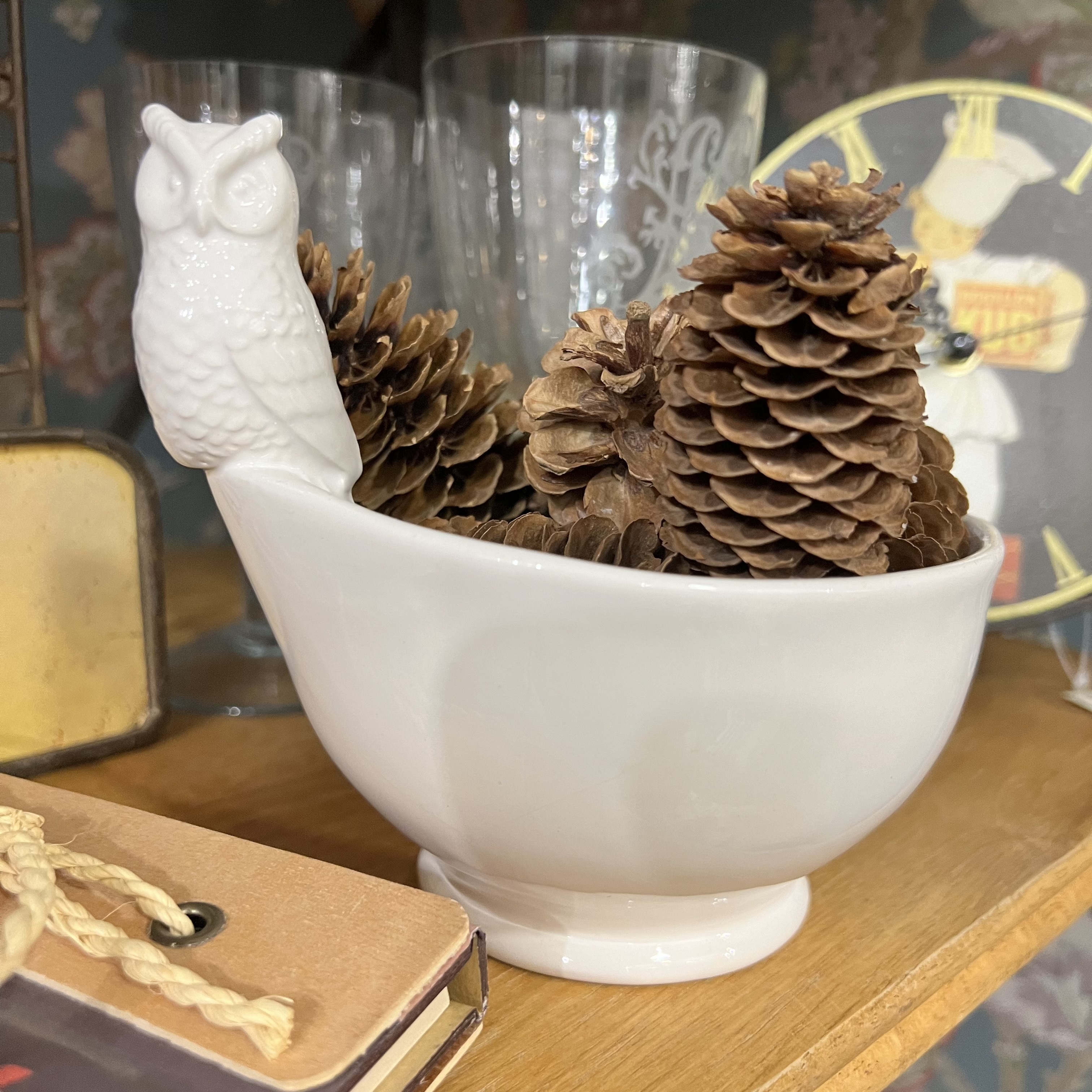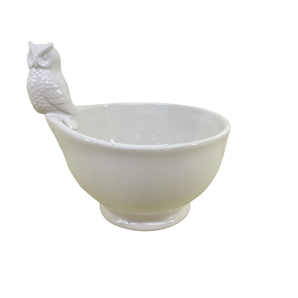 Оригинальная чаша из керамики, на краешек которой присела сова. Сова — красивая и таинственная ночная птица, которая символизирует знания, мудрость и рассудительность. Такую чашу можно использовать как супницу или для салатов.