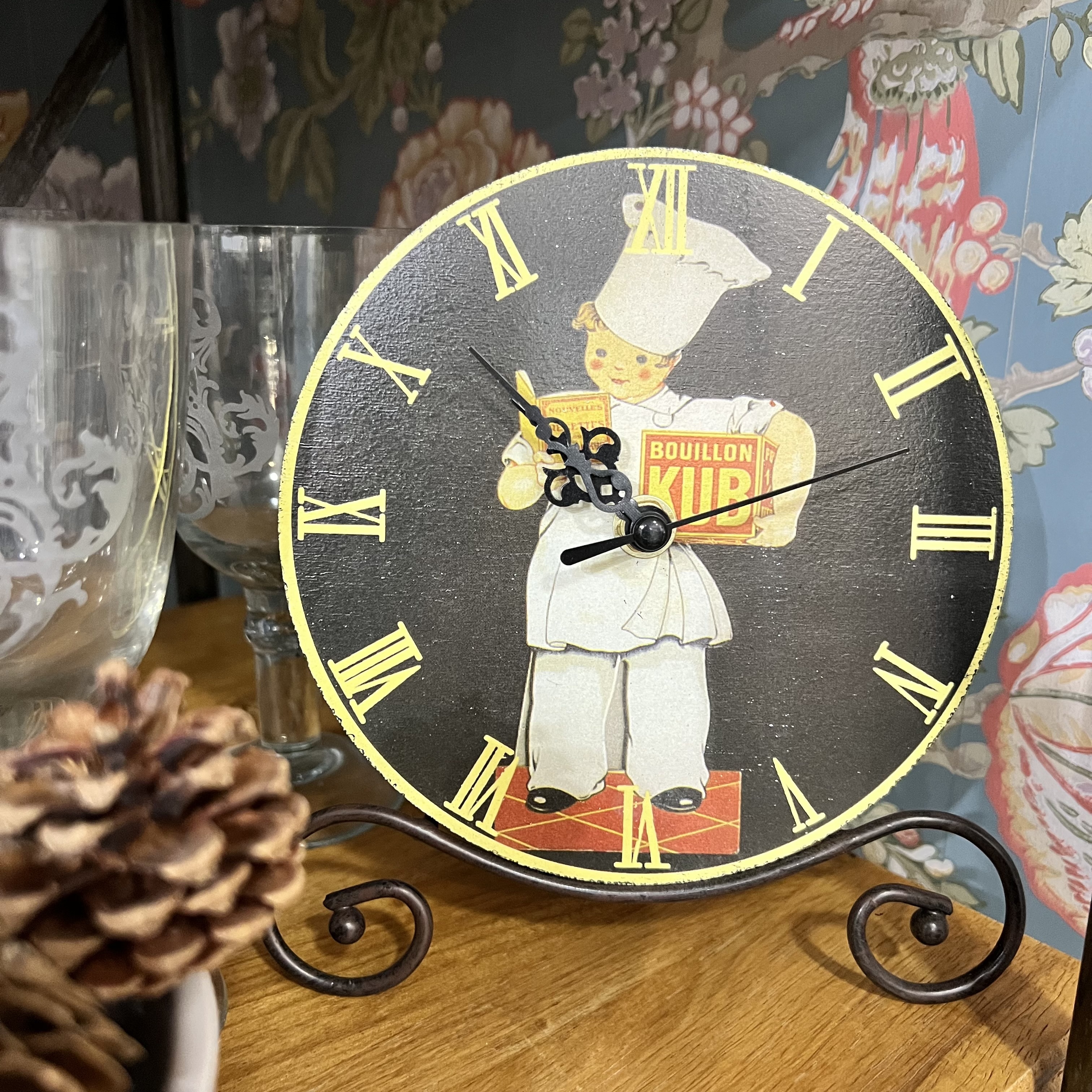 Часы круглой формы с изображением повара. Это хороший подарок любителям нестандартных, оригинальных вещей. Часы замечательно впишутся в интерьер кухни или дачи.