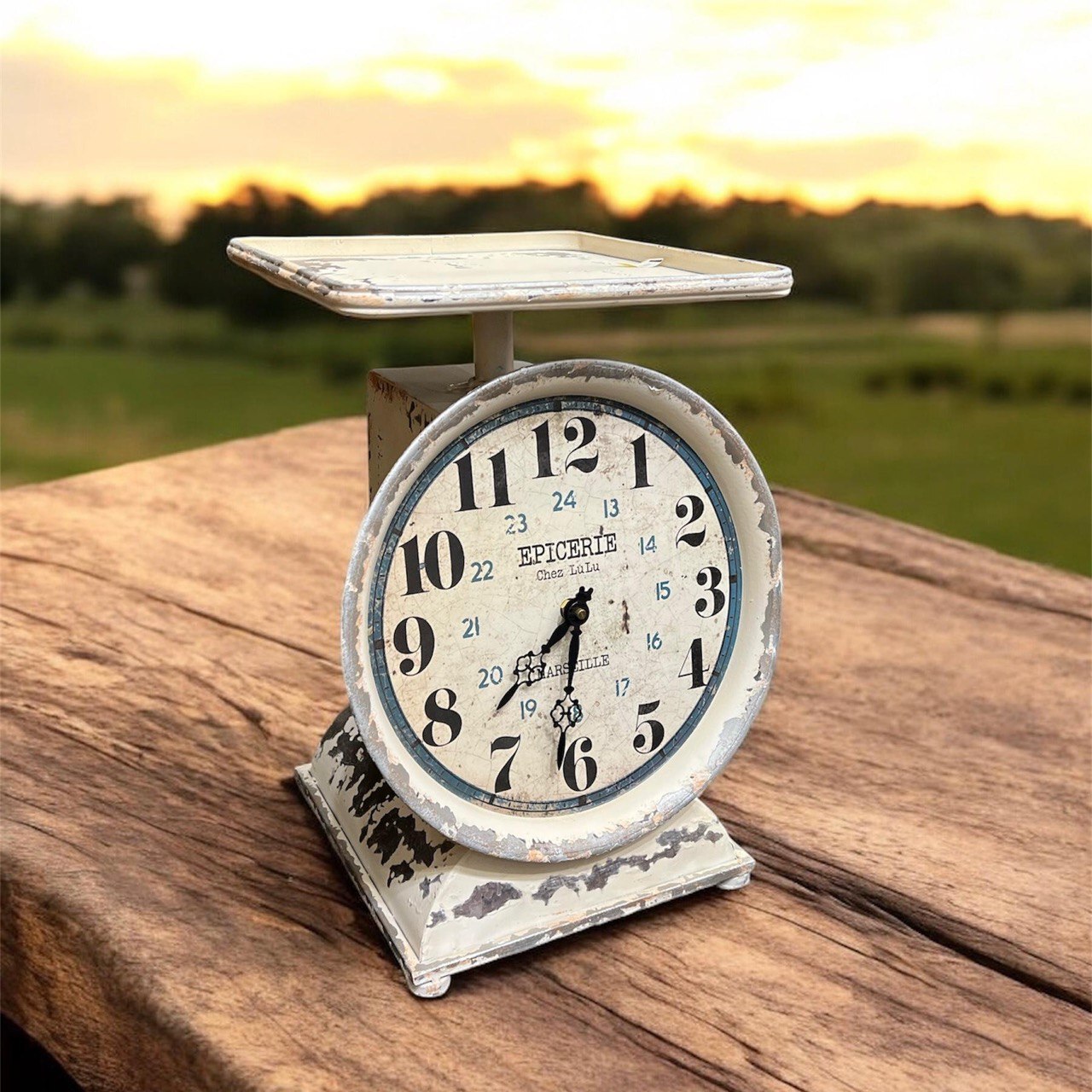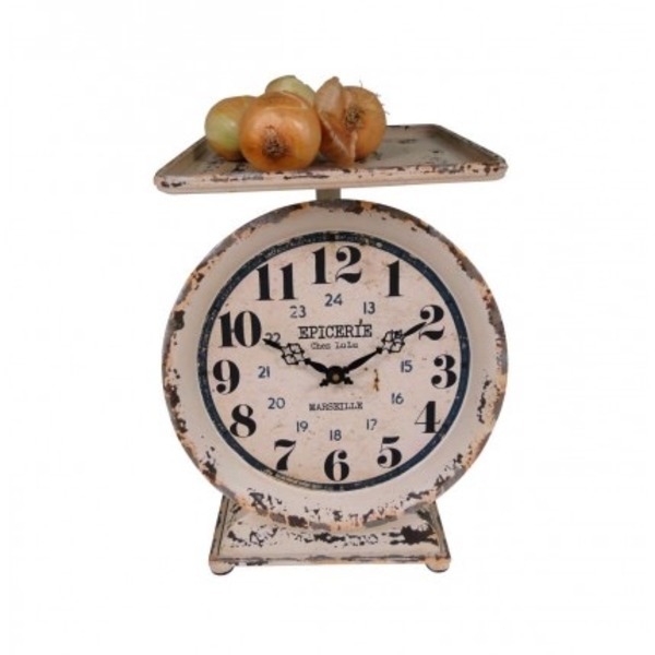 Наши старинные, винтажные часы в виде весов с белым покрытием выглядят так, как будто они существуют уже много лет. Они добавят идеальный штрих к вашему кухонному столу. Верхний лоток идеально подходит для демонстрации фруктов, растений или продуктов. Отличный подарок для себя или близких.