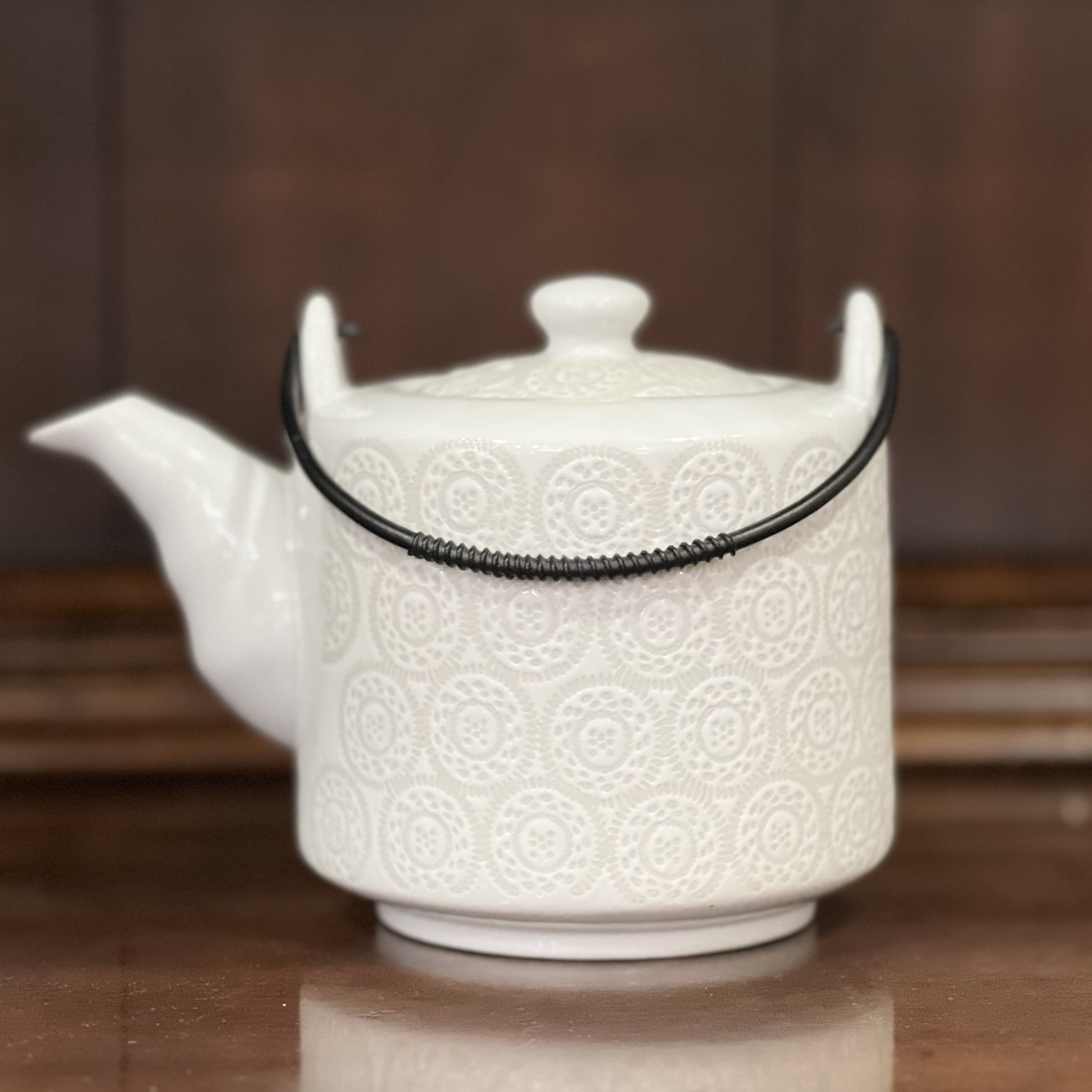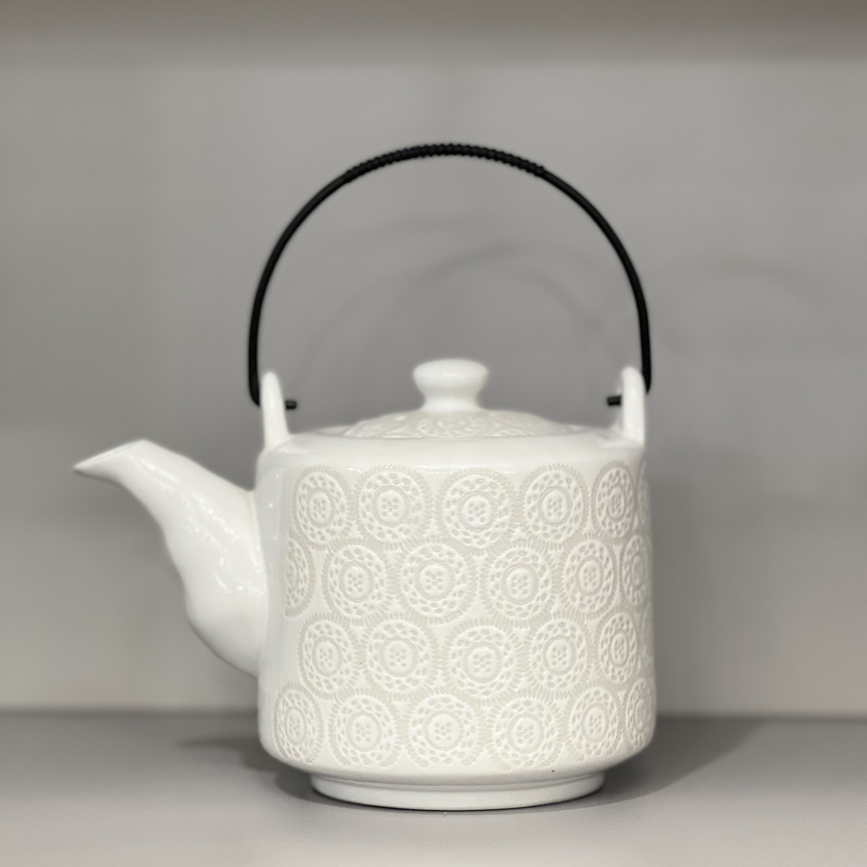 Керамический заварочный чайник объемом 1л. Имеет удобную ручку, плотную крышку и изящный носик, расположенный под нужным углом, благодаря чему кипяток не прольётся, сочетает в себе изысканность и простоту, классику в белом цвете. Подлежит использованию в посудомоечной машине, а также в микроволновой печи. Благодаря специальным технологиям нанесения, глазурь не теряет своих защитных и цветовых свойств даже через несколько лет.