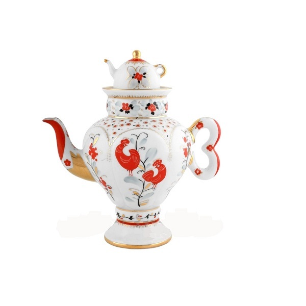Чайник изготовлен на Императорском фарфоровом заводе из твёрдого фарфора. Форма отливается вручную. Для декорирования используется ручная надглазурная роспись. Авторская модель создана в 1975 году. Изделие не подходит для использования в посудомоечной машине из-за наличия надглазурной росписи в его декоре.
