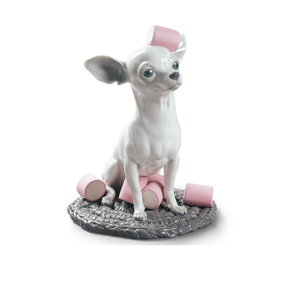 Фигурка собаки с маршмеллоу вокруг и одной на голове. Отделка, которая сочетает в себе матовый фарфор и идеальный блеск. Подойдёт для любителей животных и владельцев чихуахуа.