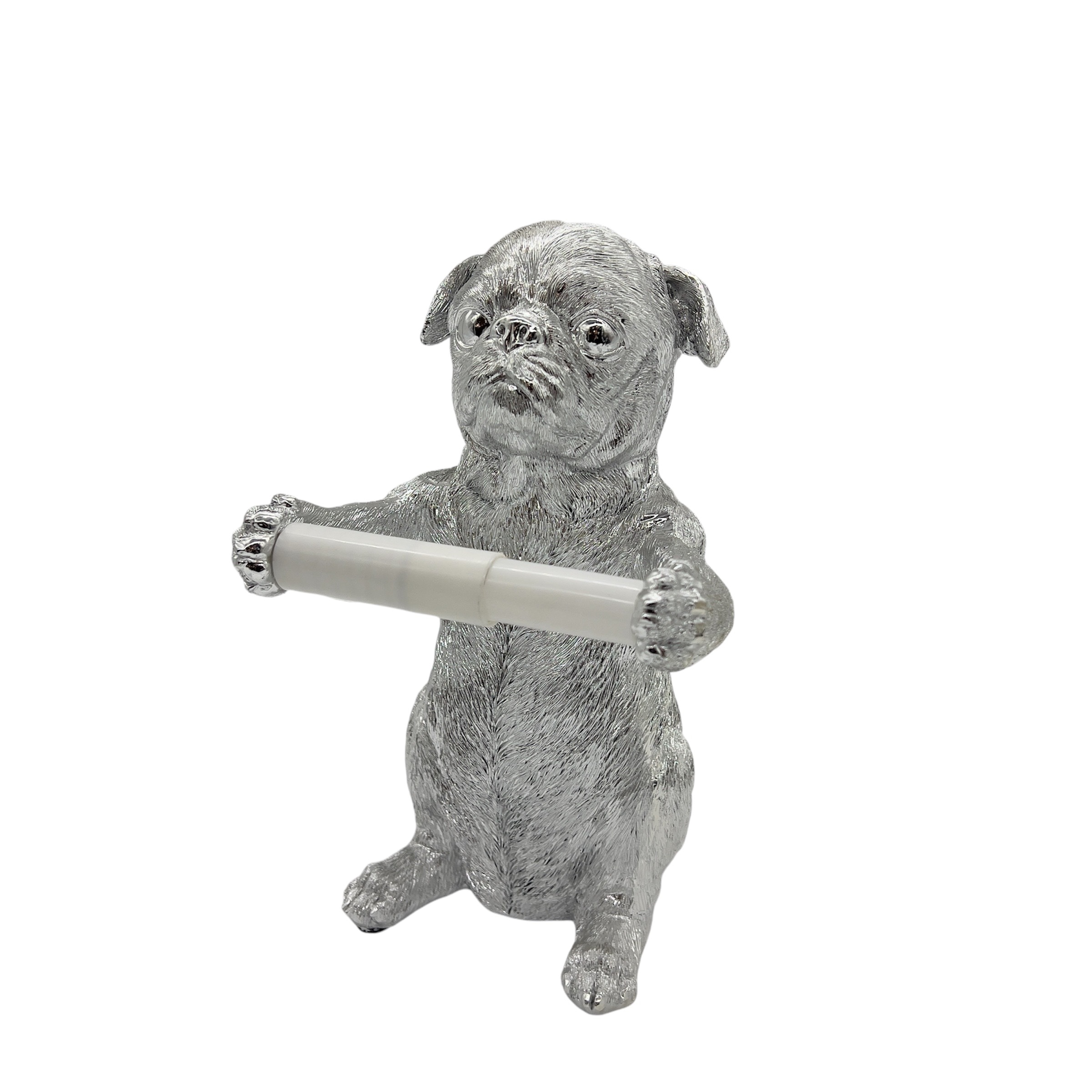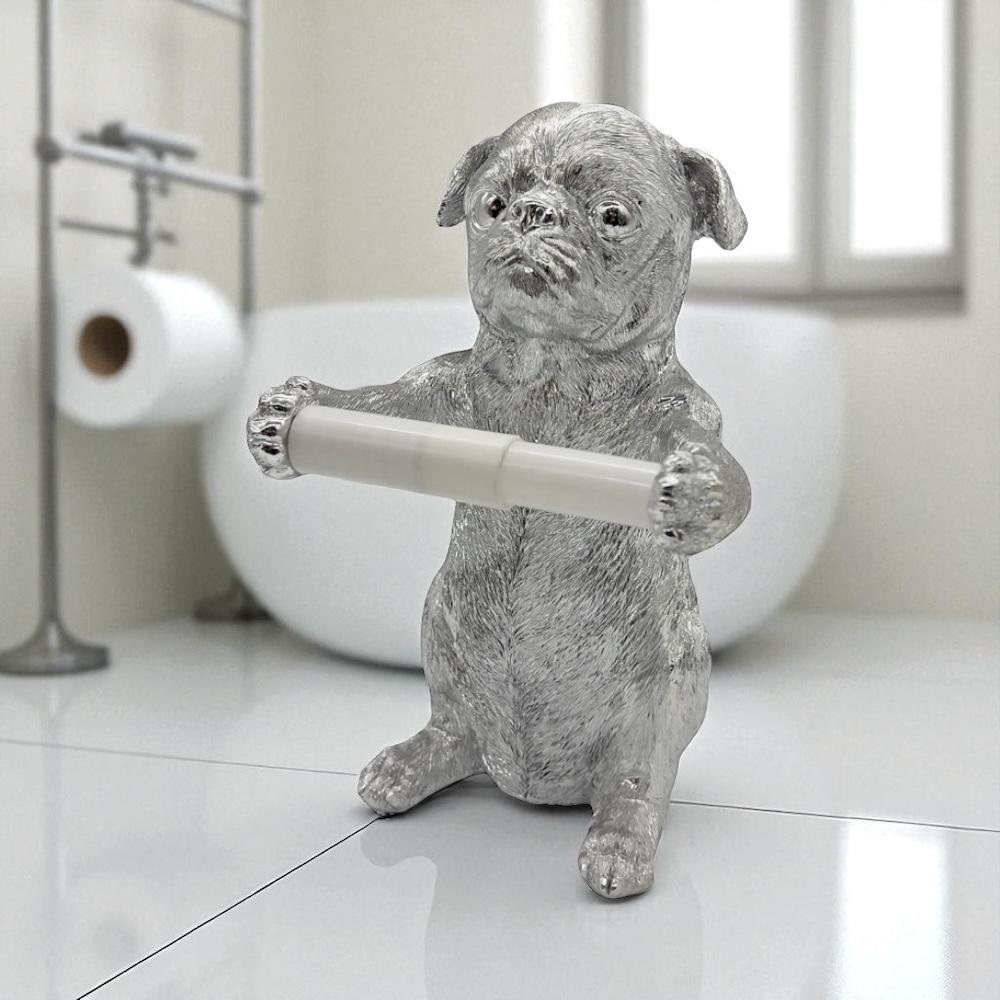 Держатель для рулона бумаги в виде мопса - необычайная изюминка, которая одновременно и декоративна, и полезна.