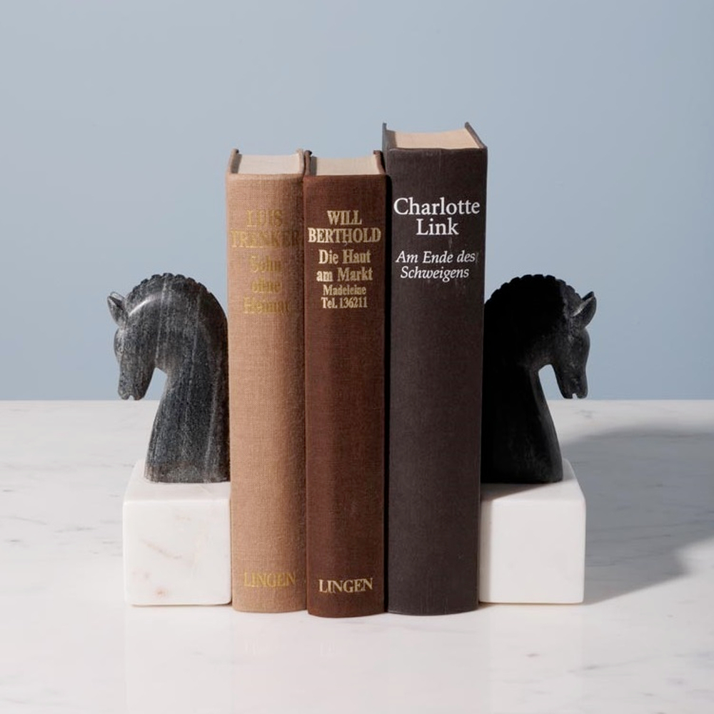 Это мраморные держатели для книг в виде двух лошадей, выполненные в паре. Они изготовлены из высококачественного мрамора, что придаёт им прочность и элегантный внешний вид. Лошади изображены в статической позе, создавая гармоничное и стильное сочетание. Эти держатели отлично подходят для украшения библиотеки, книжных полок или рабочего стола, одновременно выполняя практическую функцию и добавляя изысканный штрих в интерьер.