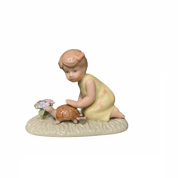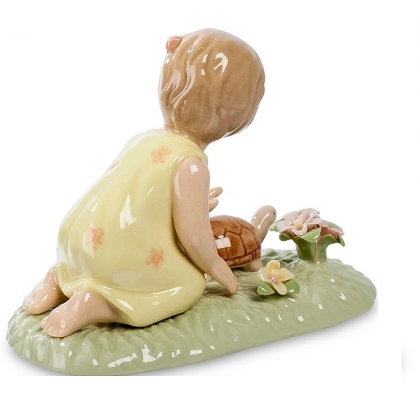 Фигура декоративная Девочка с черепашкой изготовлена из фарфора, может стать интересным подарком на любой праздник.
