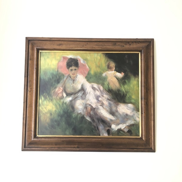 Классика всегда в моде. Копии известных произведений искусства сделают пространство атмосферным и утонченным. Репродукция с картины Ренуара "Женщина с зонтиком и ребенком" оформлена в багетную раму из натурального дерева, пропитанного натуральным воском. Среди картин нет полностью идентичных изделий, что является гарантией их оригинальности и рукотворности.