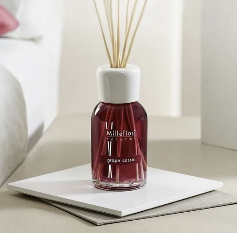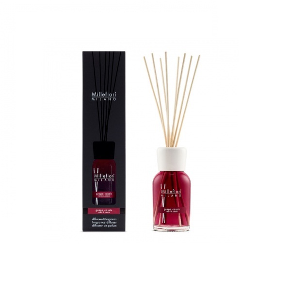 Аромадиффузор с палочками Виноградная гроздь, время диффузии - до 5 месяцев. Аромат винограда и чёрной смородины, раскрывается нотами цитрусовых, цветочных и сладких фруктовых граната, персика и ягод ванили.