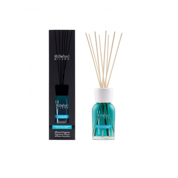Ароматизатор для дома с ротанговыми палочками Средиземноморский бергамот, время диффузии - до 5 месяцев. Средиземноморский бергамот погружает Вас в аромат бергамота, лимона и розовых нот грейпфрута. Зелёные ноты листьев фиалки переплетаются с ароматом лаванды и горечавки. И в заключении, древесно-мускусный шлейф раскрывается нотами ветивера и кедра.