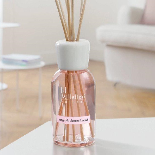 Ароматизатор для дома с ротанговыми палочками Цветы магнолии и дерево, время диффузии - до 5 месяцев. Цветок экстравагантной красоты раскрывается в этом свежем и очаровательном аромате, где нежные ароматы лепестков переплетаются с щедрыми цветочными цветущими нотами магнолии, чтобы показать древесную базу.