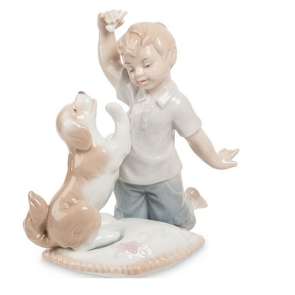 Чтобы пёс был верным и надёжным другом, его нужно постоянно дрессировать. Красивая и изящная фигурка в виде ребёнка, играющего с собачкой, порадует всех кто любит украшать свой интерьер или дарить стильные, оригинальные подарки.