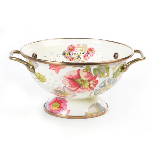 Дуршлаг из эмалированной нержавеющей стали с бронзовым ободком и антикварными латунными ручками. Он является необходимым аксессуаром на кухне. Идеален для ягод.