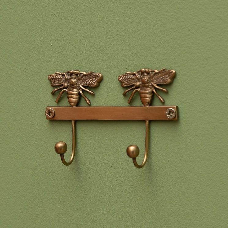 Это двойной настенный крючок, выполненный в стиле с изображением пчел в элегантном ретро-стиле. Каждая из двух крючков имеет округлую ручку для надежного крепления одежды, аксессуаров или других предметов. Такой крючок отлично подойдет для украшения интерьера и функционального использования в прихожей, ванной или любой другой комнате, добавляя уют и оригинальность в дизайн.