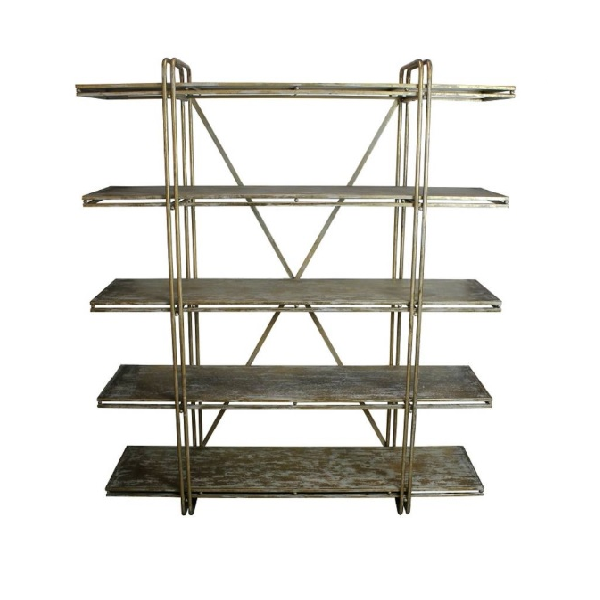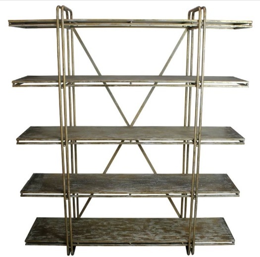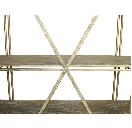 Этажерка в золотом цвете, достаточно высокая, элегантная и очень вместительная. Использовать её для книг, семейных фотографий или предметов декора в гостиной или даже в шоуруме - решать Вам. Прочна и устойчива.