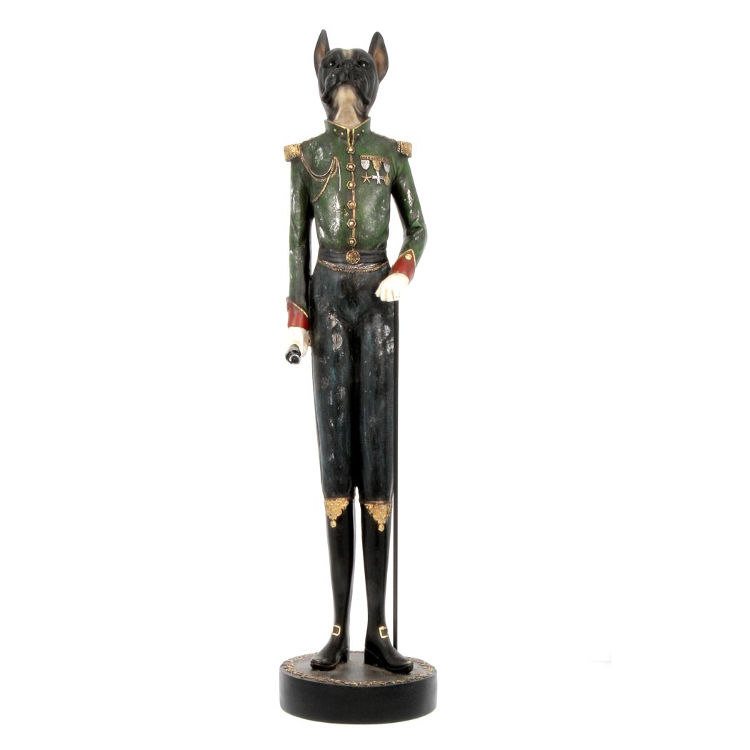 Этот уникальный декоративный сувенир — фигура в элегантном военном костюме выполнена из прочных материалов, с аккуратной проработкой деталей. Медаль и украшения на груди подчёркивают статус и изысканность. Высокий рост и утончённый стиль делают этот предмет оригинальным украшением интерьера или подарком для ценителей необычных коллекционных вещей. Элегантность и юмор в одном — идеальный акцент для вашего дома или кабинета.