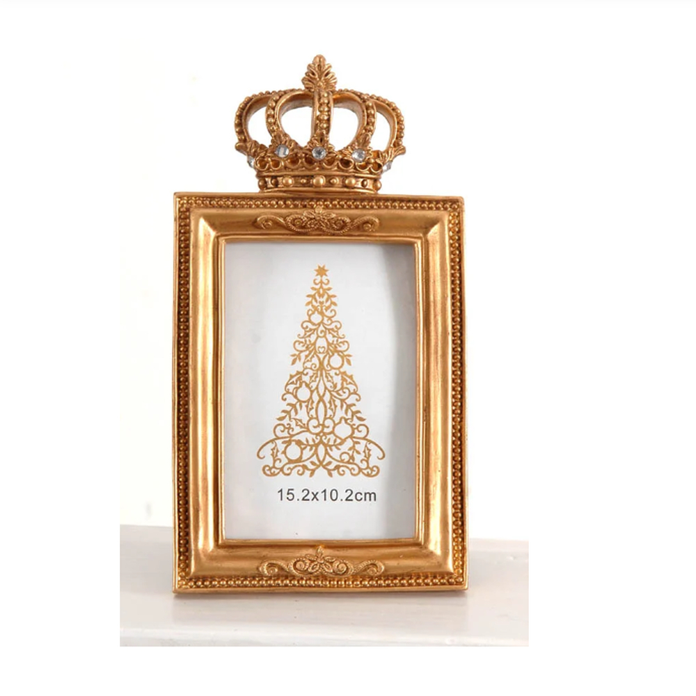 Нарядная золотистая фоторамка с короной подчеркнёт знаковость момента на снимке. Такая композиция станет эффектным элементом декора.