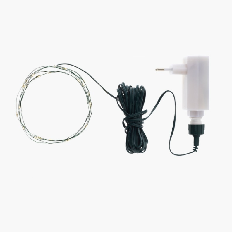 Гирлянда подходит для использования как в помещениях, так и на улице. Работает от сети. Провод зелёного цвета.