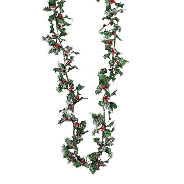 Эта гирлянда добавит нотку природы любому праздничному декору. Гирлянда имеет ярко-красные ягоды повсюду и блестящие листья падуба. Идеально подходит для украшения лестниц, камина. Украшена красными ягодами.