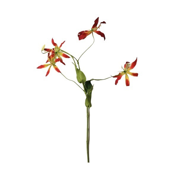 Ветка глориозы, также называемая плетистой лилией, принадлежит к семейству лилий и поставляется в виде одностебельного цветка. Можно использовать в сочетании с другими искусственными цветами в красочных искусственных букетах или композициях.