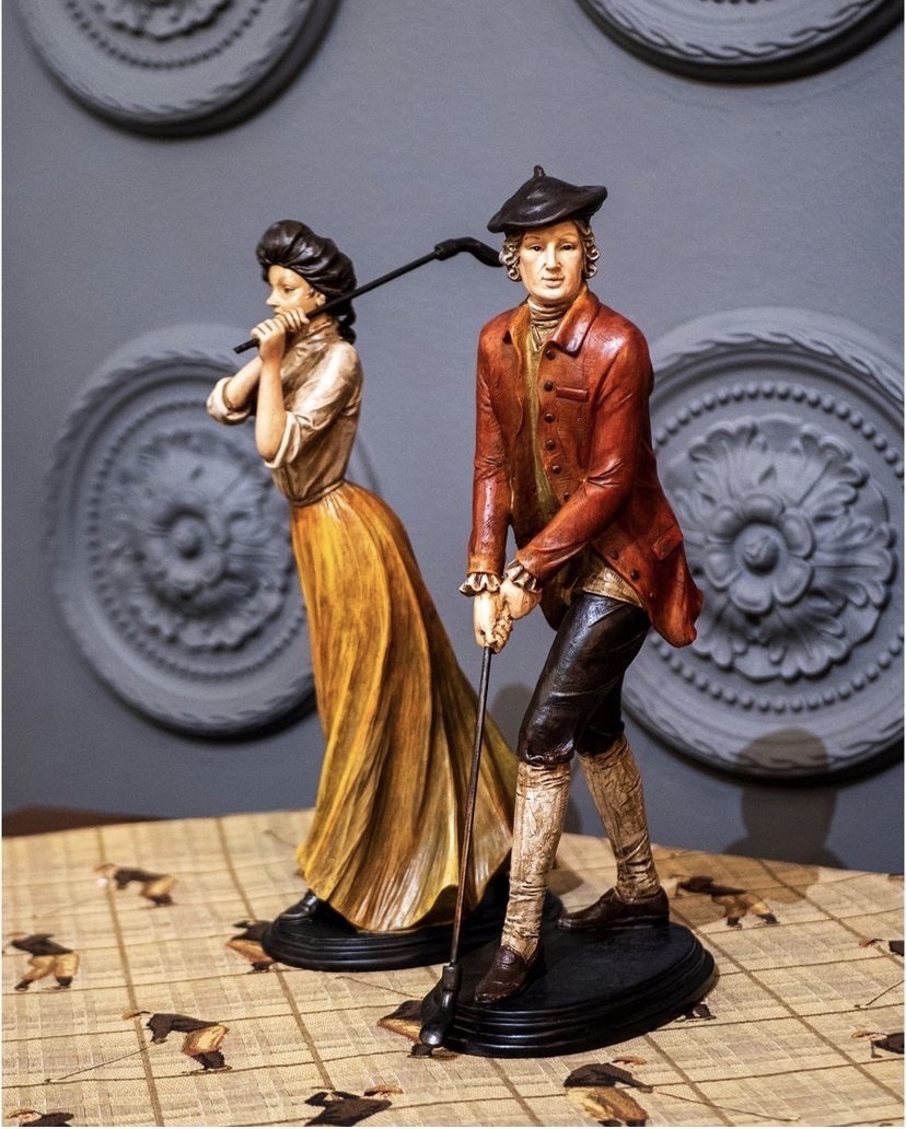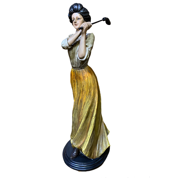 Фигурка из полимерного материала, изображающая барышню, замахнувшуюся клюшкой для гольфа. Винтажная спортсменка составит пару гольфисту, который также есть в коллекции.