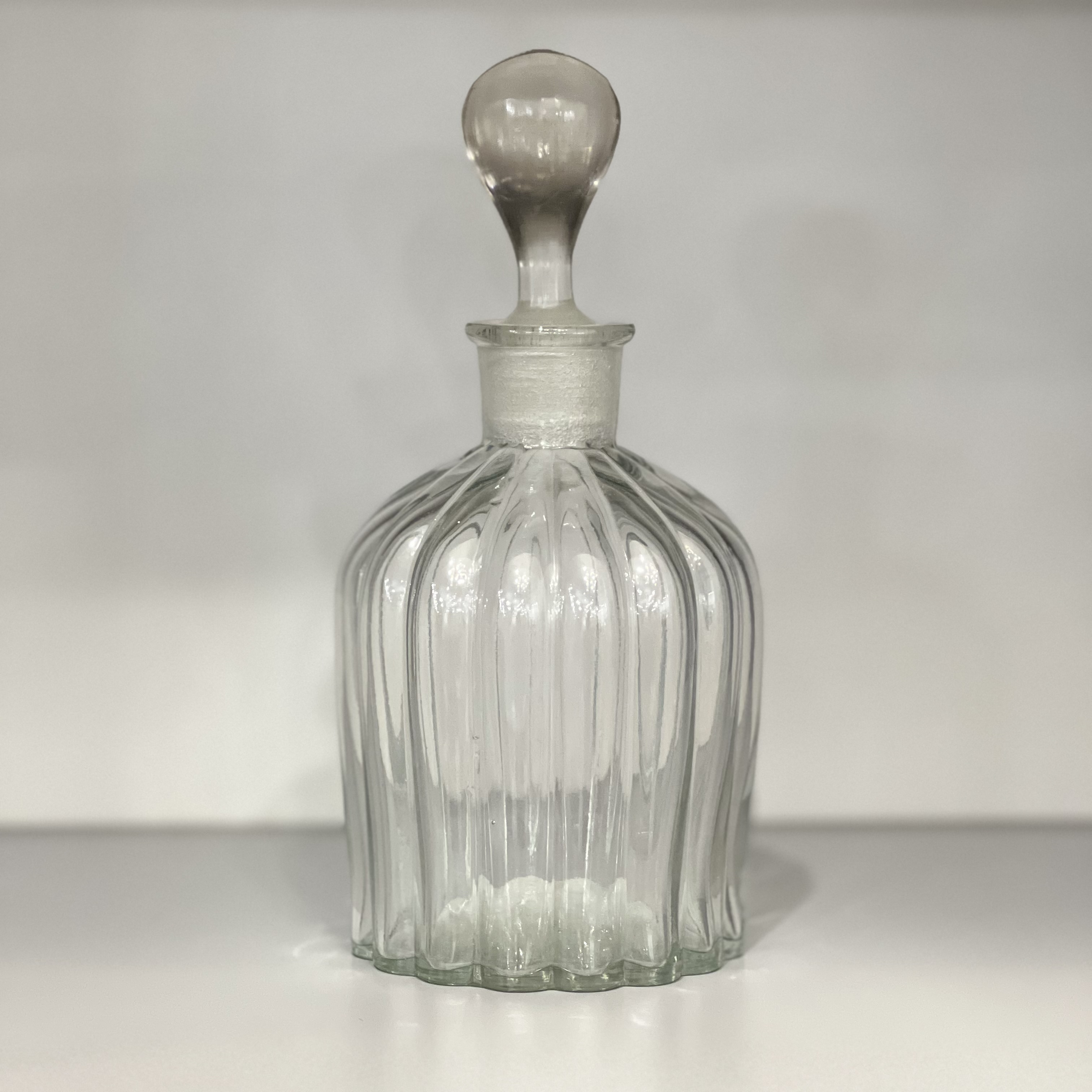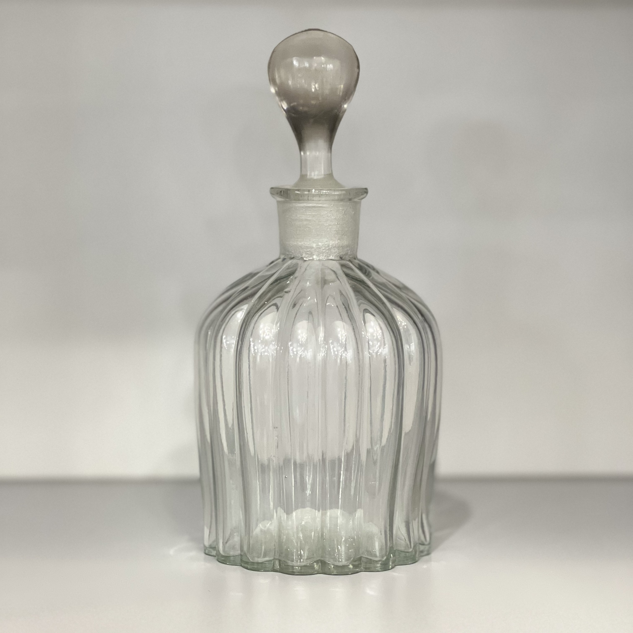 Прекрасный графин из прозрачного стекла с широкими канавками. Его можно использовать для виски, коньяка, воды или сока. Такой графин сделает сервировку очень стильной. Также можно добавить к нему несколько бокалов.