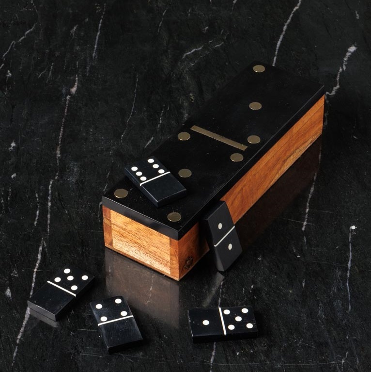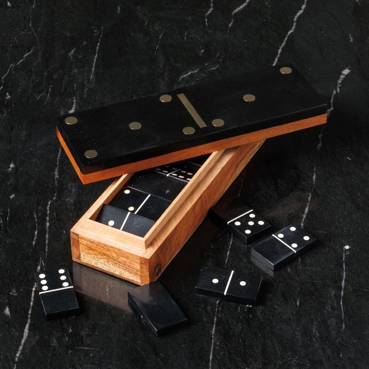 Это классическая игра домино, которая включает деревянную доску и пластиковые костяшки с нанесенными точками. Натуральные материалы: дерево акации и смола отличаются высоким качеством и долговечностью. Поэтому такой набор также служит не только для развлечения, но и как предмет интерьера или подарка.Производители придали традиционной игре особый эстетический и рукотворный характер, делая каждую партию особенной.