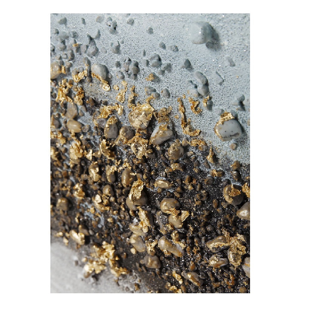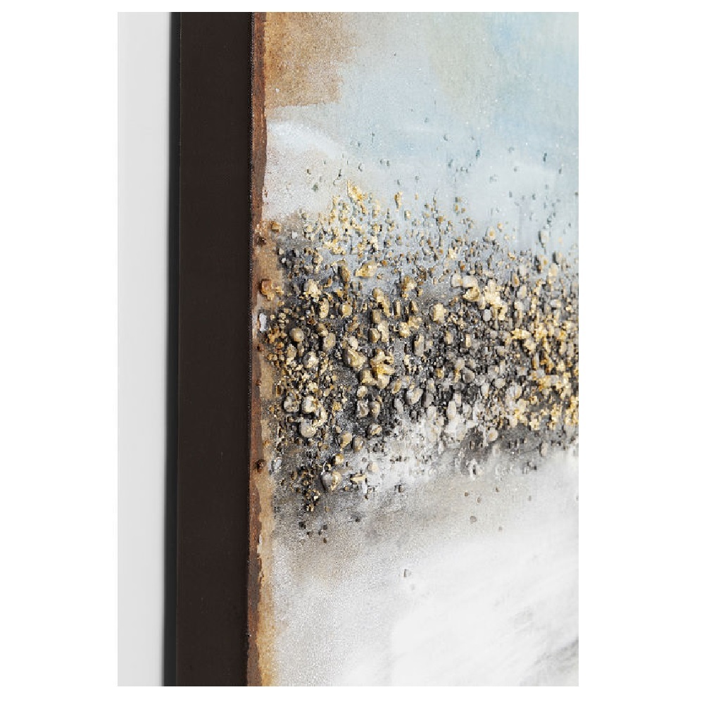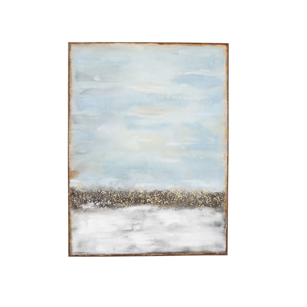 Декоративные элементы, такие как картины, принты и фотографии, дополняют стиль мебели - пусть ваши чувства решают! Абстрактное и импрессионистическое соединились в нежных кремовых, бежевых и голубых тонах. Словно звёздная пыль, картину окружает трёхмерная лента из камней и золотой мишуры. Ручная работа.