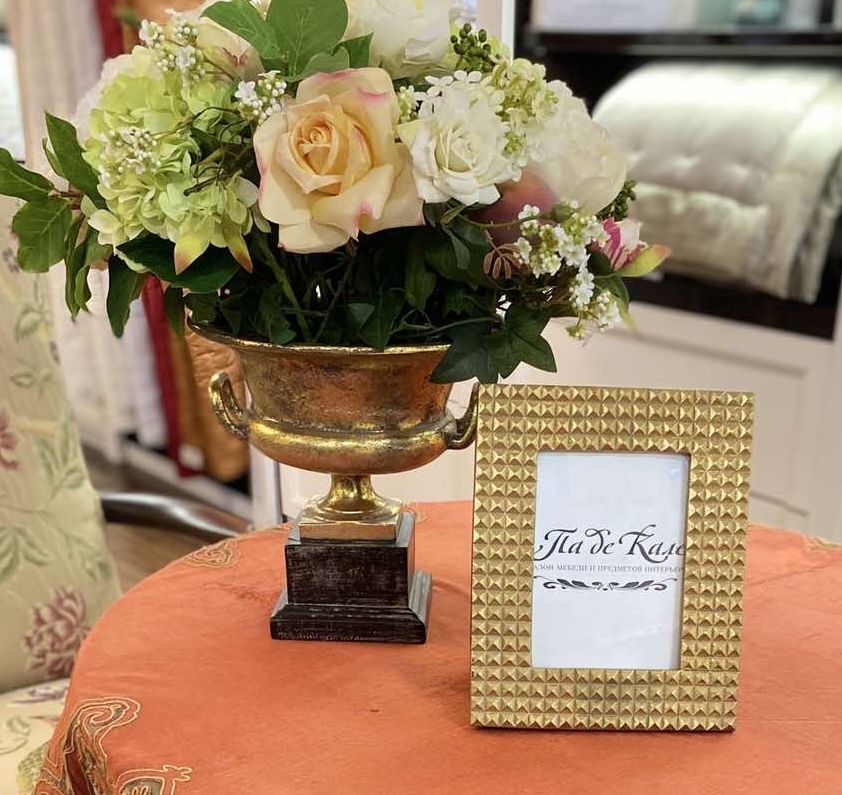Оригинальное золотистое кашпо на ножке станет стильным украшением гостиной, холла, спальни или зимнего сада. Размер основания 14х14 см.