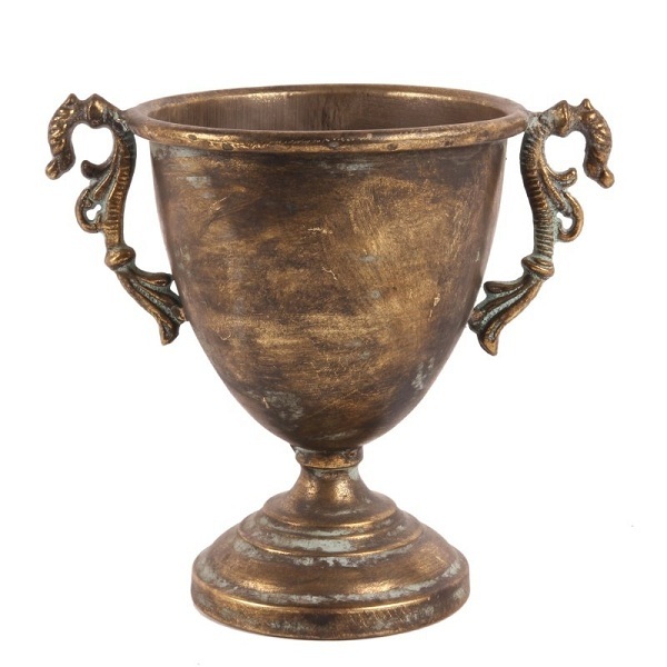 Эту симпатичную вазочку можно использовать как самостоятельное украшение интерьера и собрав в неё композицию из цветов. Изготовлена из металла, с золотым напылением. Просто добавьте цветы на Ваш вкус!