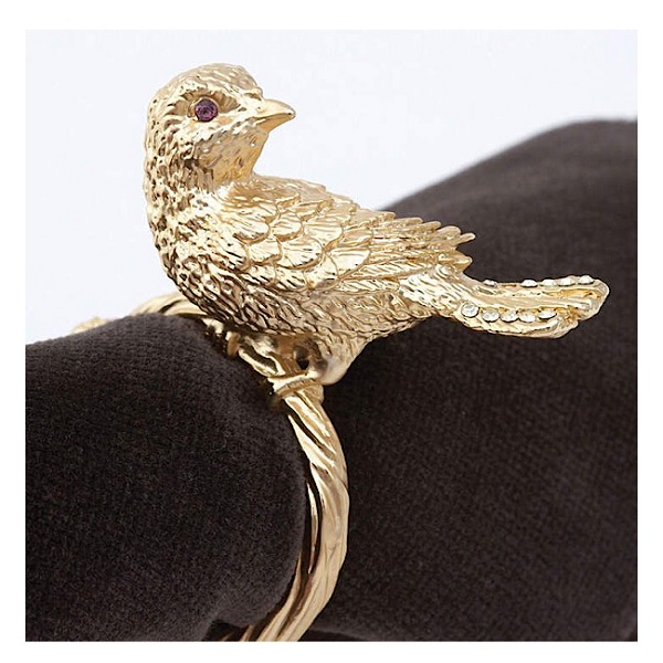 Набор из четырёх колец в форме птиц. Каждое имеет покрытие -24-каратную позолоту, нанесённую вручную.