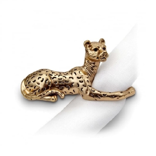 Кольца для салфеток в виде Ягуара. Созданы под впечатлением от природы и путешествий. В их производстве используются методы изготовления ювелирных украшений, а тончайшие детали спаиваются вручную с применением серебра. Покрыты 24К-золотом. В наборе 4 штуки. Представлены в фирменной подарочной коробке.