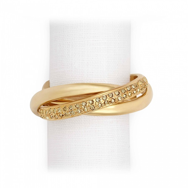 Набор состоит из 4-х колец для салфеток, каждое из которых в свою очередь состоит из трёх колец, собранных вместе. Одно из них полностью усыпано жёлтыми кристаллами в огранке Swarovski. Такие кольца помогут сделать сервировку безупречной. Представлены в фирменной подарочной коробке.