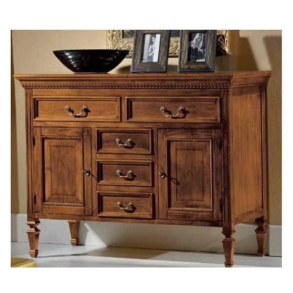 Большой и вместительный комод оснащен пятью выдвижными ящиками и двумя дверцами.