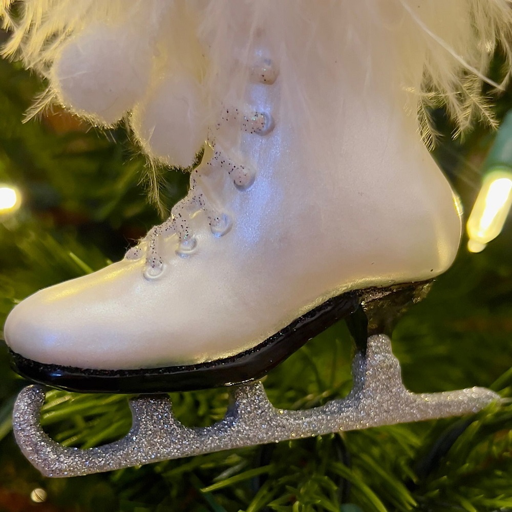 Белые новогодние коньки с уютной меховушкой - это просто мечта, а не игрушка! Подвеска на ёлку придаст образу хвойного деревца свежести и зимнего очарования.