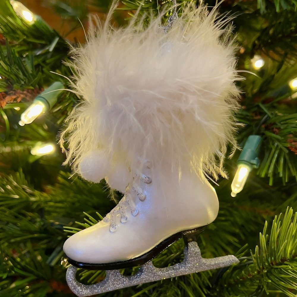 Белые новогодние коньки с уютной меховушкой - это просто мечта, а не игрушка! Подвеска на ёлку придаст образу хвойного деревца свежести и зимнего очарования.