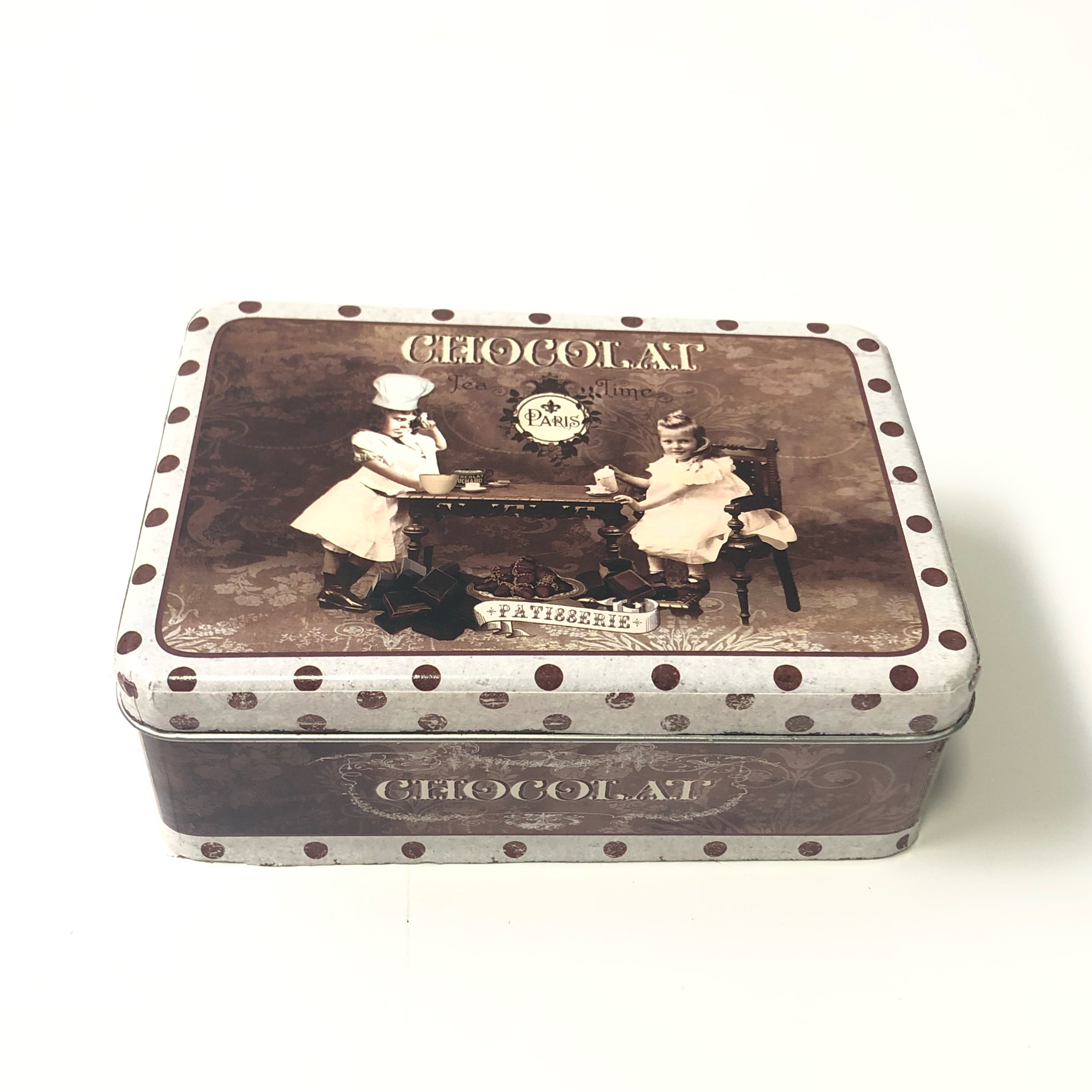 В те времена, когда даже самые простые конфеты считались диковинным подарком, а чай напитком аристократов, наиболее распространённой упаковкой для всех этих угощений считались жестяные коробочки. Шкатулка в шоколадном стиле. Кажется, чувствуешь запах чёрного шоколада.Хранить в неё и упаковать в неё можно любой подарок, но вот о сладостях не стоит забывать.