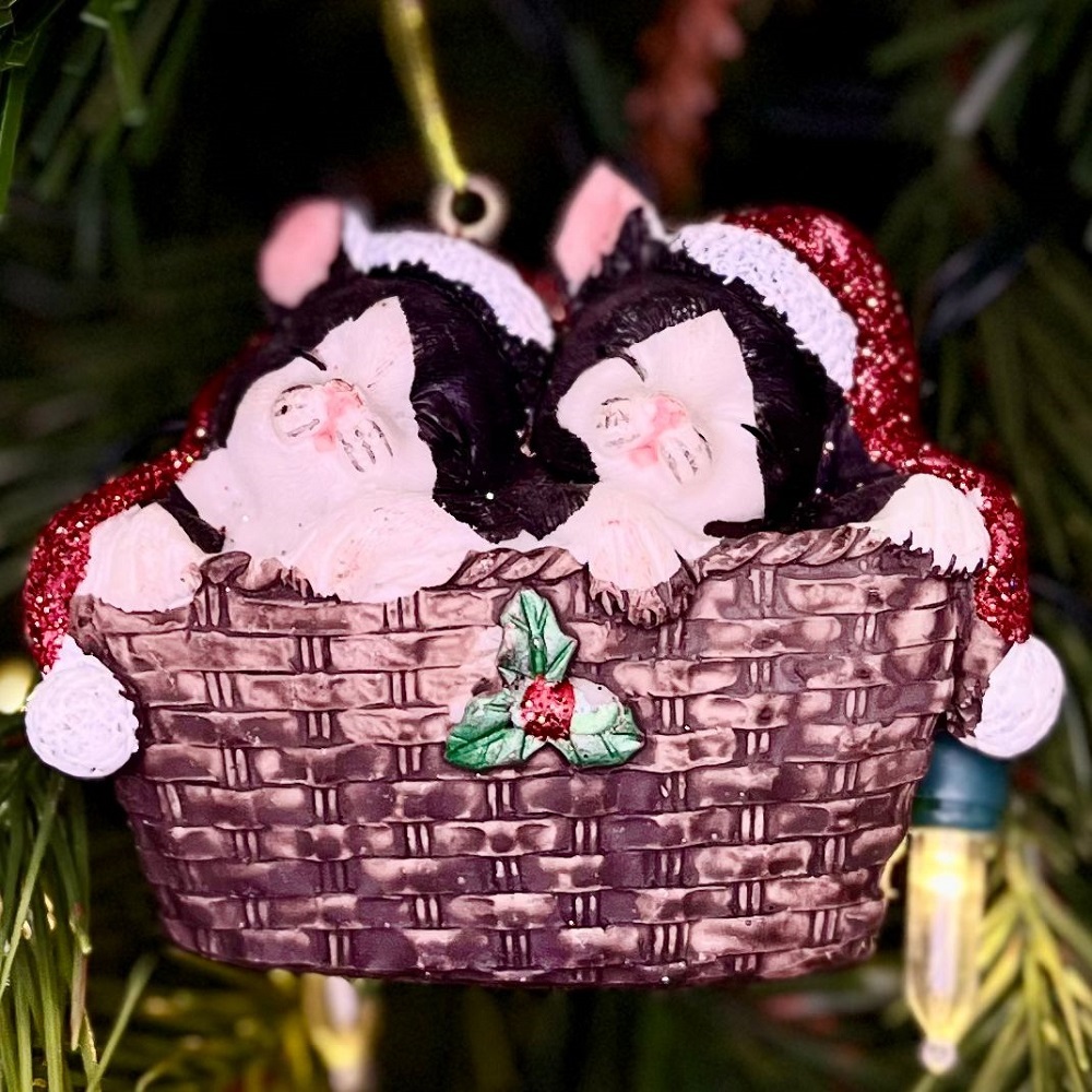 Кажется, этих очаровательных котят убаюкал звук метели за окном, а потому они свернулись в клубочек и спокойно спят на удобной корзинке.