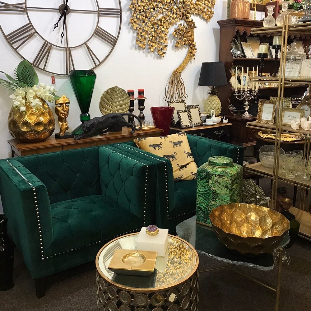 Глубокое зелёное кресло с подлокотниками и бархатной обивкой придаст любому скромному интерьеру дух роскошных бутик-отелей.