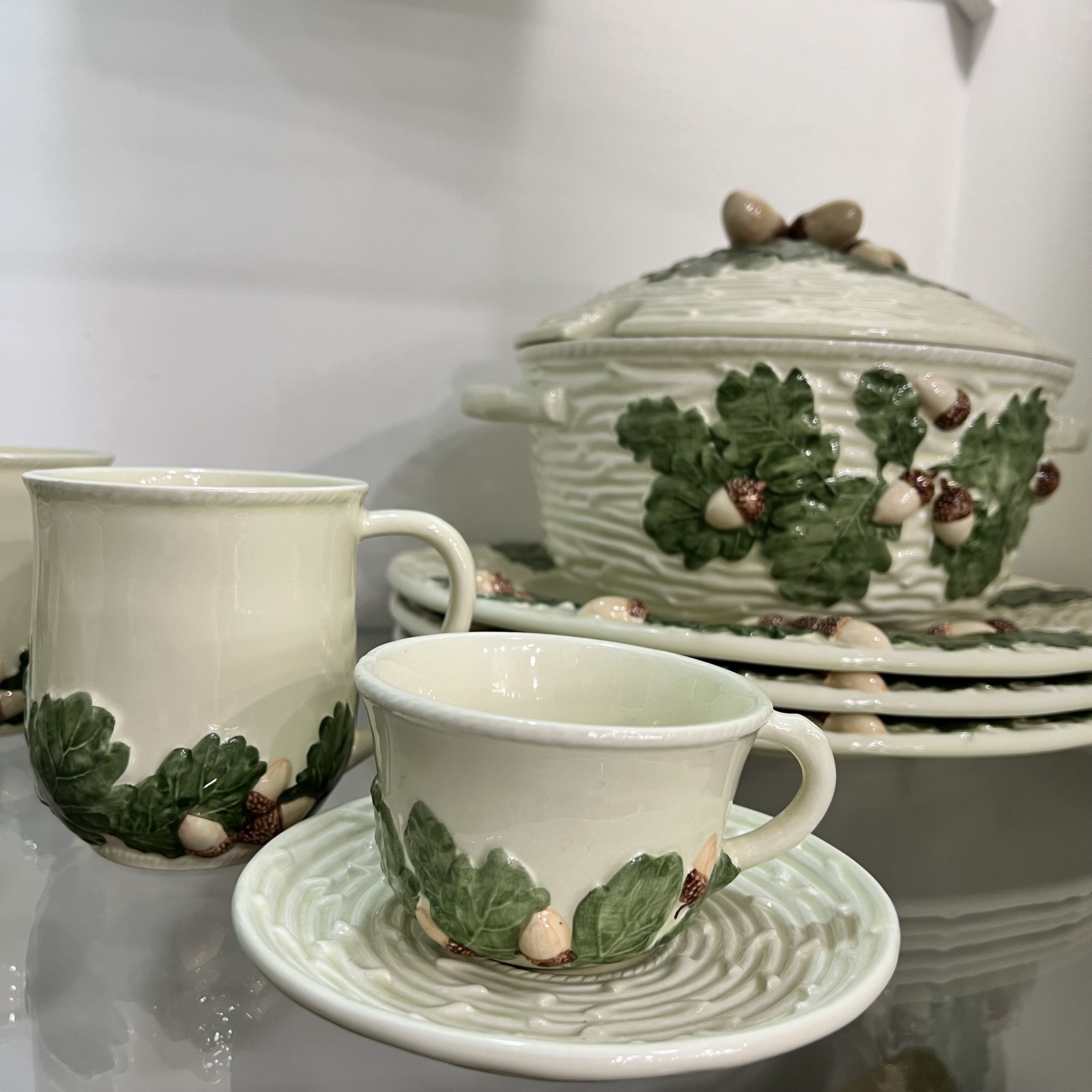 Коллекция Жёлуди увековечивает натуралистическое наследие бренда, представляя собой неожиданную и забавную коллекцию различных ёмкостей, которые могут служить не просто декоративными элементами, но и выполнять вполне утилитарные функции. Кружка с рисунком желудей вместительна и универсальна. Жёлуди не просто нарисованы, они выпирают на фоне зелени, создавая эффект натуральности.