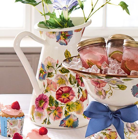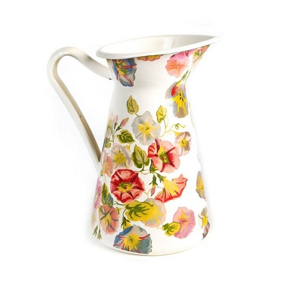 Кувшин изготовлен из нержавеющей стали, покрыт керамической глазурью. Ручная роспись в виде пышных разноцветных цветов. Идеально подойдёт для лимонада, холодного чая или ягодного напитка, а также может служить оригинальной вазой.