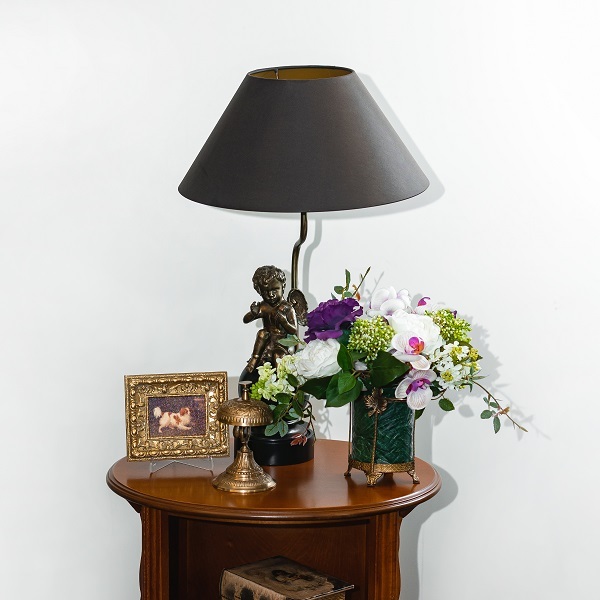 Настольная лампа с основанием в виде ангела на шаре. В комплекте с абажуром.