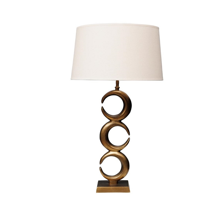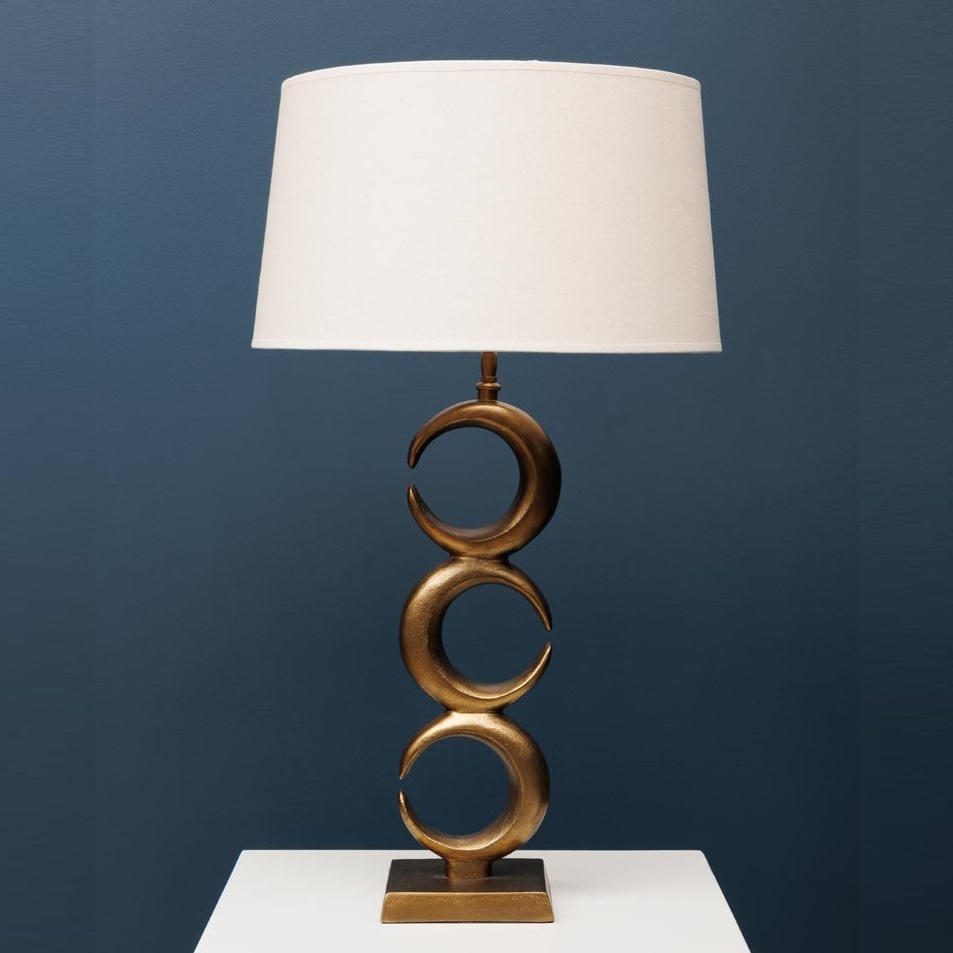Настольная лампа с декоративным основанием, выполненным в стиле циклов Луны, изогнутых полумесяцев. В комплекте - абажур светлого цвета, который создает мягкое и уютное освещение. Отличный выбор для придания интерьеру уюта и оригинальности.